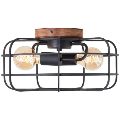 Brilliant Gwen Plafondlamp Metaal Hout Zwart | 400mm - Geschikt voor 2x E27