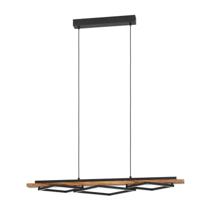 Beschrijving Eglo Pendelarmatuur Boyal Hout Zwart, Roestig 42W 3500lm - 830 Warm Wit | Dimbaar