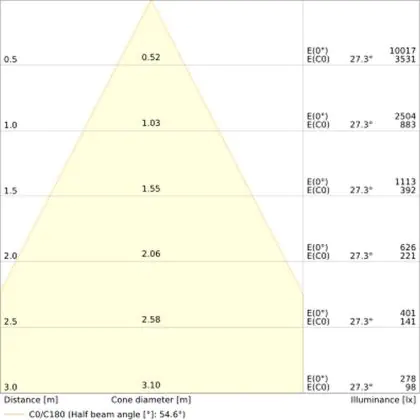 LED downlights kun je vergelijken met een inbouwspot, maar dan met een, over het algemeen, bredere stralingshoek. Downlight armaturen hebben een medium gradenbundel (25 - 40°), die perfect is voor ondersteunende verlichting, of een (zeer) brede gradenbundel (41 - >91°), die gebruikt wordt voor algemene verlichting. Deze 55° LED downlight van kun je in vele werkomgevingen en/of woningen gebruiken.