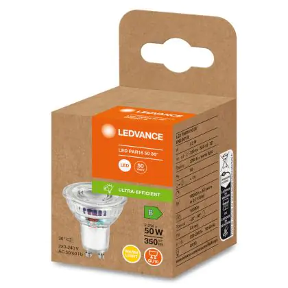 Beschrijving Ledvance Energy Efficiency Reflector LED Spot GU10 PAR16 2.2W 350lm 36D - 827 - Zeer Warm Wit |Vervangt 50W