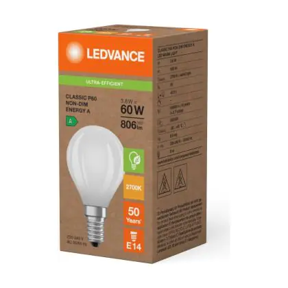 In ons assortiment E14 LED lampen valt er genoeg te kiezen. Vooral qua kleurtemperatuur (Kelvin) en vorm. Deze lamp heeft de volgende kleurtemperatuur: 2700K - Zeer Warm Wit. Hoe lager de kleurtemperatuur, hoe warmer het licht. Wil je ergens sfeer toevoegen? Kies dan voor een E14 LED lamp van 1800 tot 2700 Kelvin. Hoge kleurtemperaturen zoals 4000 en 6500 Kelvin zijn op hun beurt beter geschikt als functionele verlichting. De vorm van dit product is: Peer. Op zoek naar een ander type E14 LED lamp? Gebruik dan het zoekfilter 'vorm' aan de linkerkant van deze pagina. Ook handig om te weten is de lichtopbrengst van deze lamp. Die is 806 lumen.
