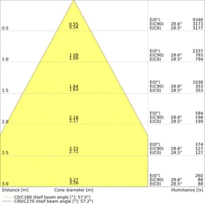 De gradenbundel geeft informatie over hoe breed het licht wordt uitgestraald. Dit zit tussen de 0 en 360 graden (D). Hoe kleiner de hoek, hoe specifieker de lichtbundel is. Over het algemeen is een smalle gradenbundel perfect voor sfeer- of accentverlichting, terwijl een brede gradenbundel ideaal is om grote oppervlaktes te verlichten.