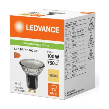 Beschrijving Ledvance LED PAR16 GU10 Reflector 8W 750lm 36D - 830 Warm Wit | Vervangt 80W