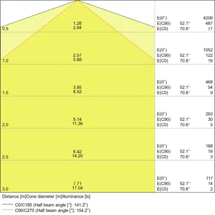 De lichtopbrengst (Lumen), geeft weer hoe krachtig het uitgestraalde licht is. Dit is belangrijk om te weten om de juiste sfeer te creëren. 0 tot 400 Lumen is bij uitstek geschikt voor accent- of sfeerverlichting. Een hoger aantal Lumen is, afhankelijk van de grootte van de ruimte, beter geschikt als ondersteunende- of basisverlichting. Heb je plafonds hoger dan 4 meter, dan is een lichtopbrengst van minimaal 8000lm aan te raden indien heldere verliching gewenst is (vb. in werkomgevingen).