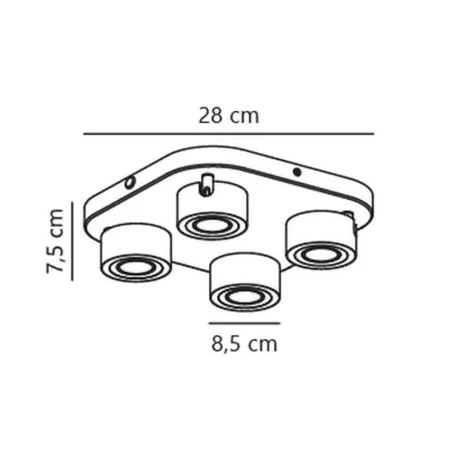 Beschrijving Nordlux Clyde Plafondlamp 4-Spot Metaal Zwart 14W 950lm - 827 Zeer Warm Wit | 85mm - 3-Staps Dimbaar