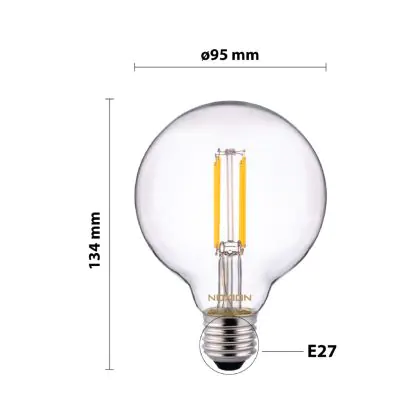 Beschrijving Noxion Lucent Filament LED E27 Globe Helder 7W 806lm - 827 Zeer Warm Wit | Dimbaar - Vervangt 60W