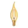 Het heldere glas van de LED lamp met een gouden gloed zorgt voor een stijlvol design waarbij je de LED filament draden binnenin kunt zien. Dit maakt het een geschikte bijdrage aan je sfeerverlichting Verder is de lamp kaarsvormig met een gebogen punt en berust met een E14 schroeffitting, ook wel dunne fitting genoemd, die makkelijk geschroefd kan worden in bestaande armaturen.