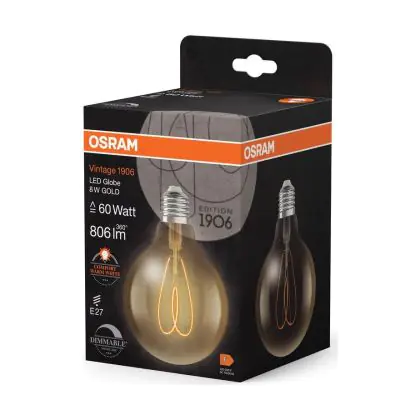 Beschrijving Osram Vintage 1906 LED E27 Globe Filament Goud 8W 806lm - 922 Zeer Warm Wit | Beste Kleurweergave - Dimbaar - Vervangt 60W