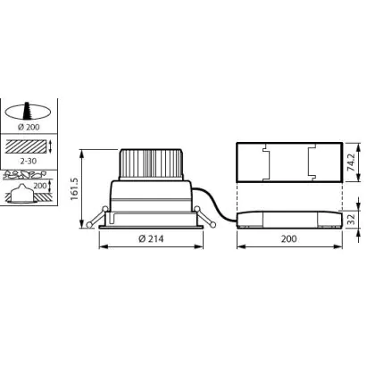Beschrijving Philips LED Downlight LuxSpace Compact Lage hoogte DN570B 52.8W 6200lm 80D - 830 Warm Wit | 214mm - Aluminium Reflector