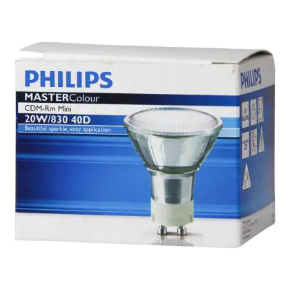 De Philips CDM-Rm mini is uitgerust met een reflector wat ervoor zorgt dat het licht gebundeld wordt. De Philips CDM-R Mini 20W 830 GX10 MR16 40D (MASTERColour) gasontladingslamp heeft een eenvoudige lampvoet, namelijk de GX10. De lampen zijn niet dimbaar.
