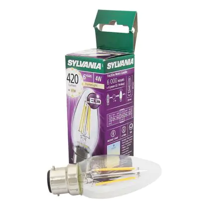 Sylvania ToLEDo B22 Kaars Filament Helder 4W 420lm - 827 Zeer Warm Wit | Vervangt 40W