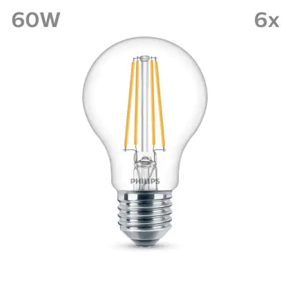 Beschrijving Voordeelpak 6x Philips Lamp LED E27 Peer Filament Helder 7W 850lm - 840 Koel Wit